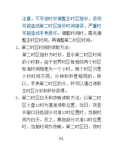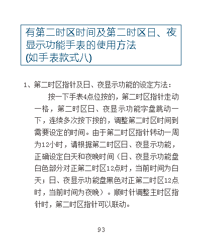 - 有第二時(shí)區(qū)時(shí)間及第二時(shí)區(qū)日、夜顯示功能手表的使用方法 ......................................... 93